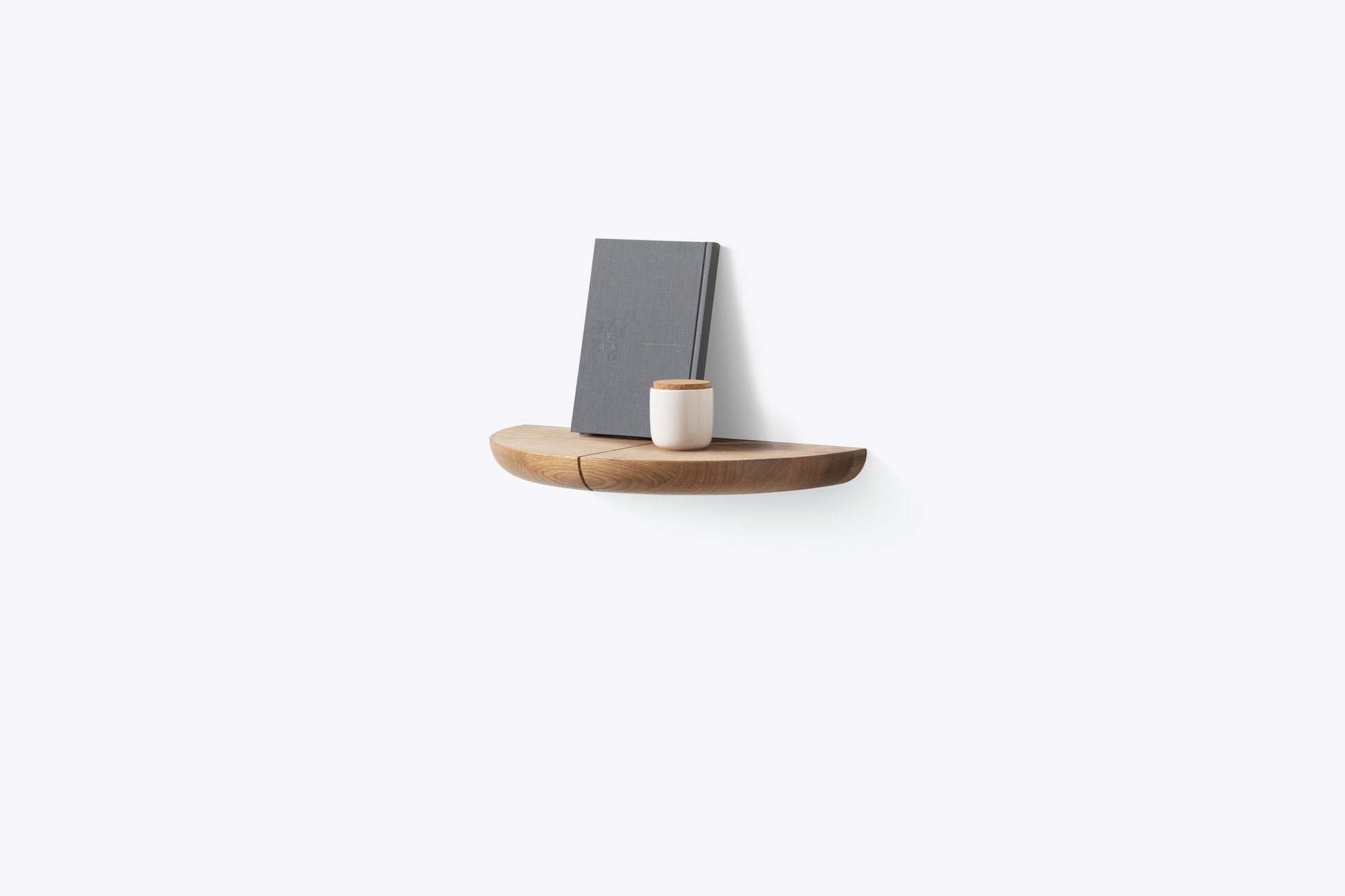 Paragraph shelves provide generous surface space, too — enough to store books, plants, or home decor pieces. What is more, each shelf has decorative grooves cut into solid wood that divides the surface into squares — that’s right as if the paragraphs of your favorite story. Finally, the shelves come in four sizes and can be arranged in various compositions, allowing you to create a unique expression of the room.