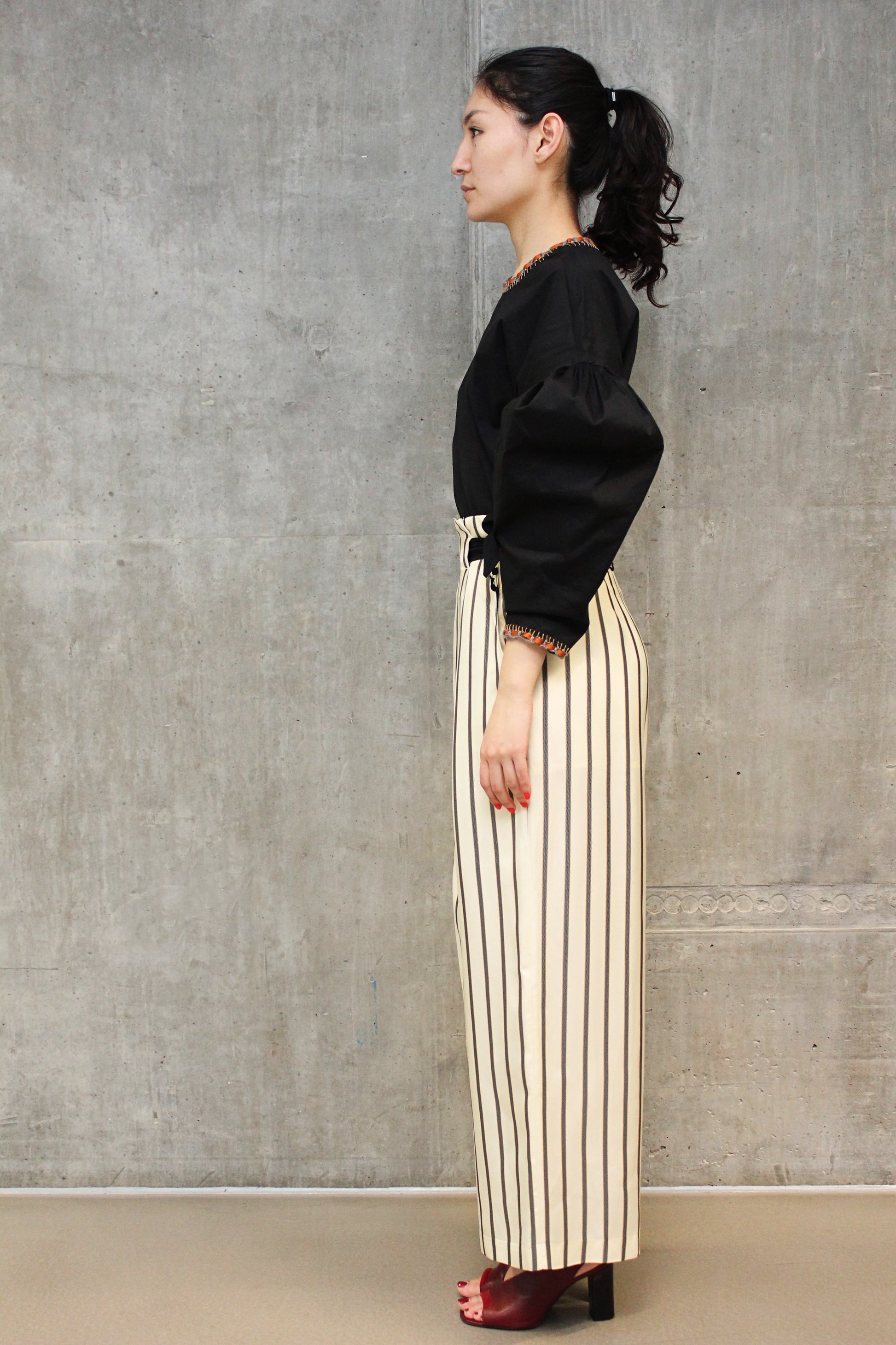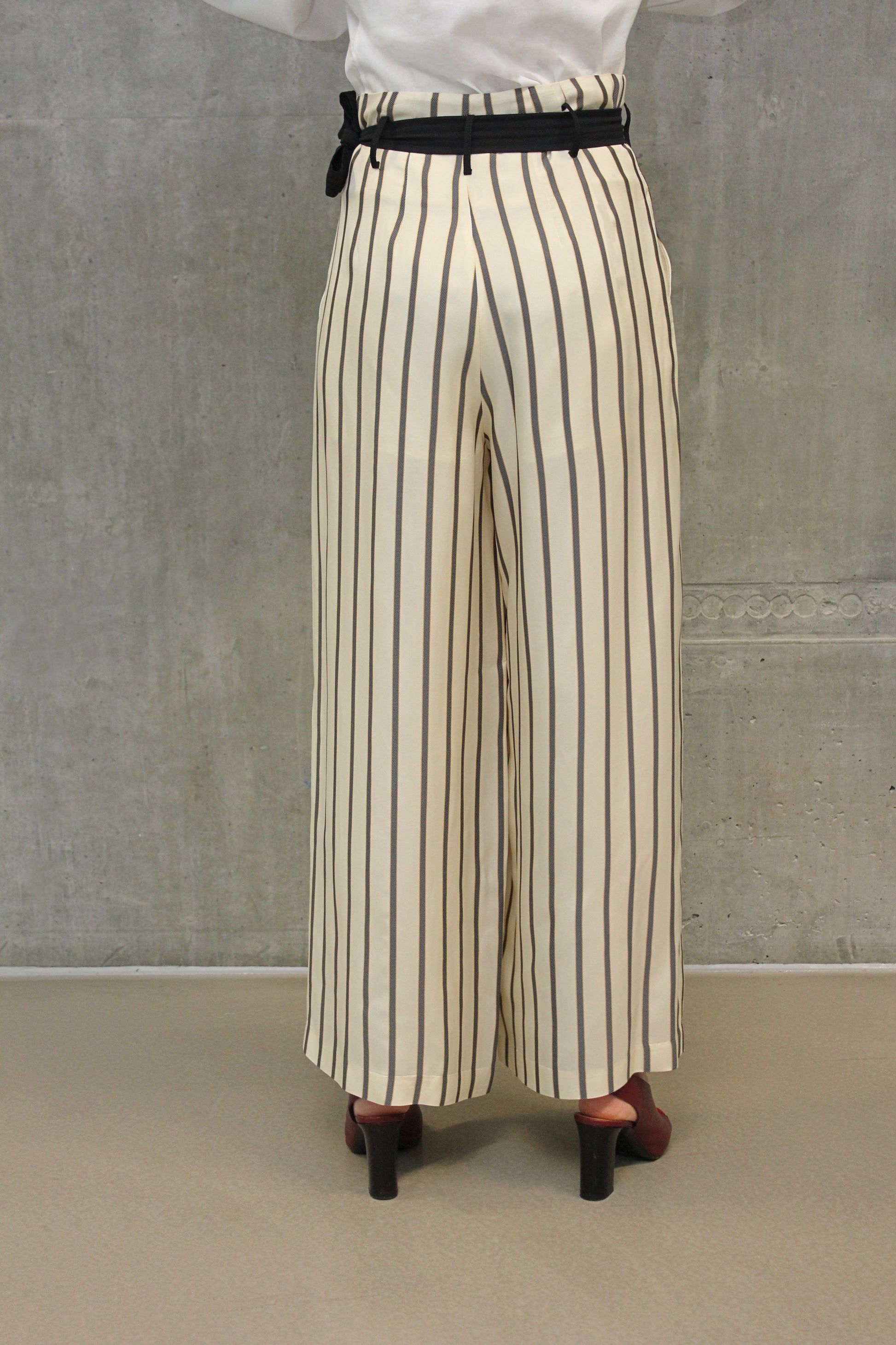 This Striped Belted Wide-leg Trousers is a versatile piece. These trousers feature a high waist, shorts' shape lining, belt, side pockets, concealed side zip fastening and a wide leg design.