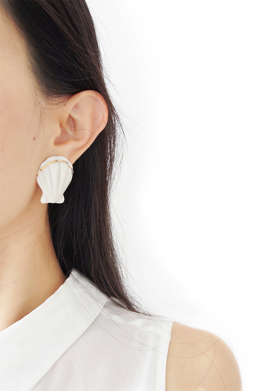 Porcelain Clam Shell Clip-On Earrings