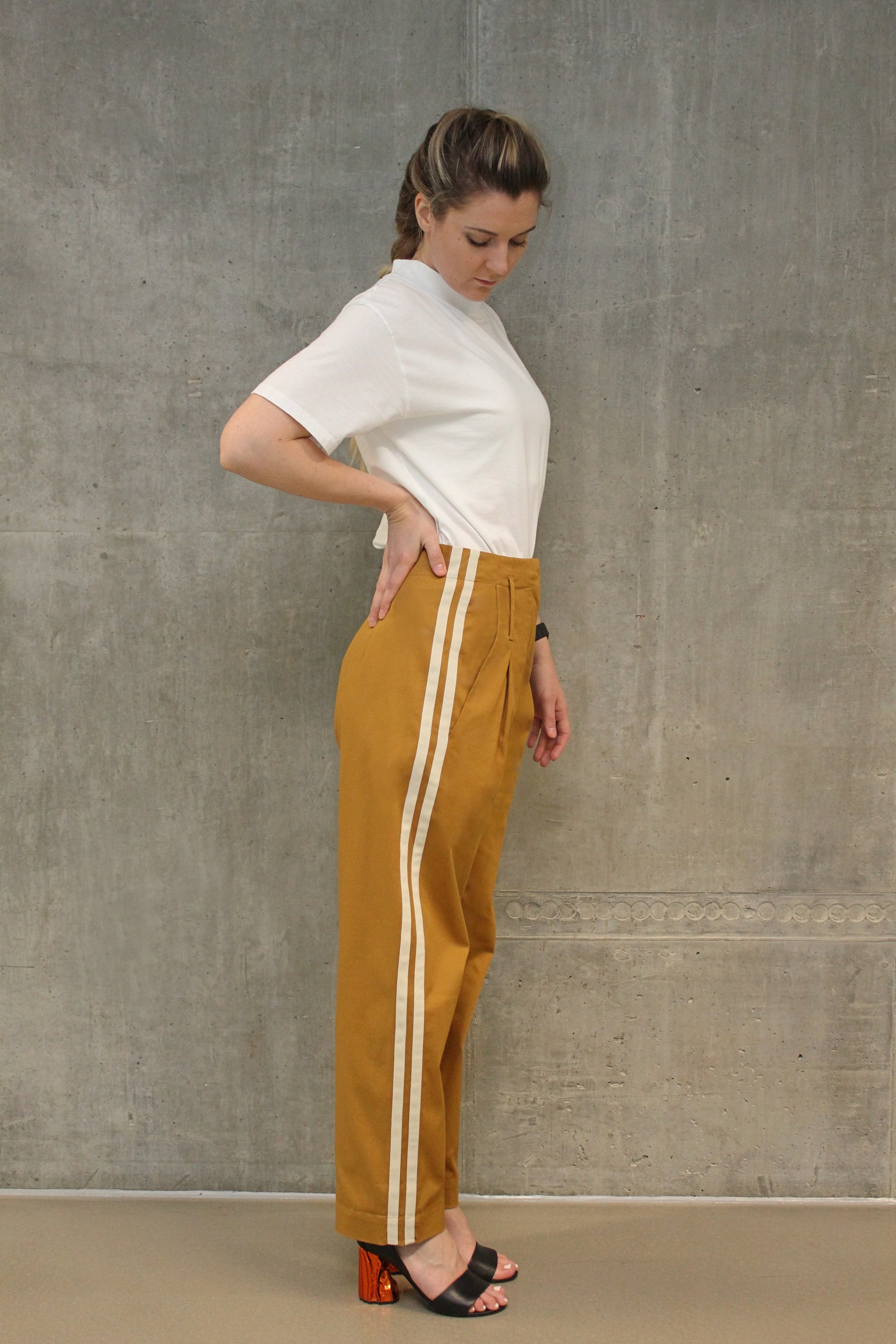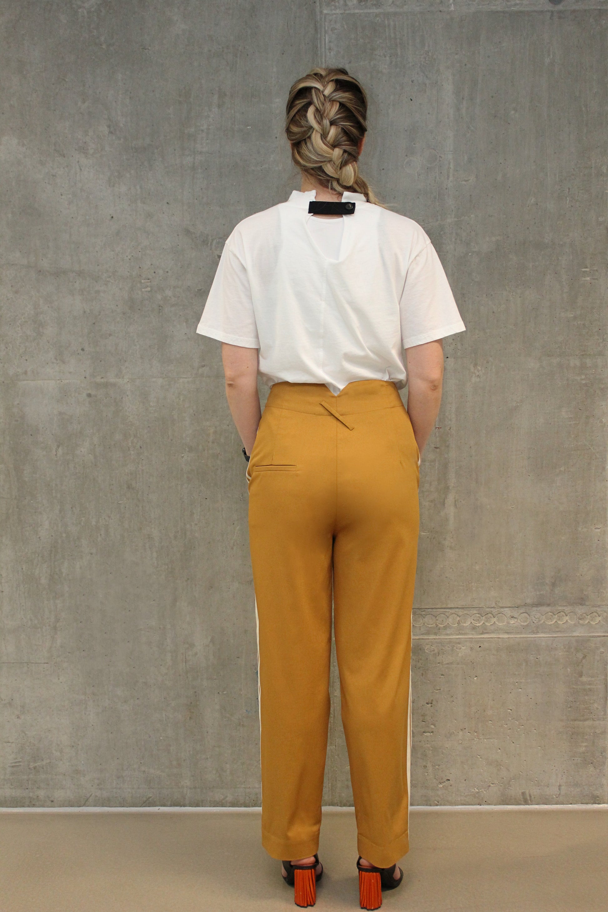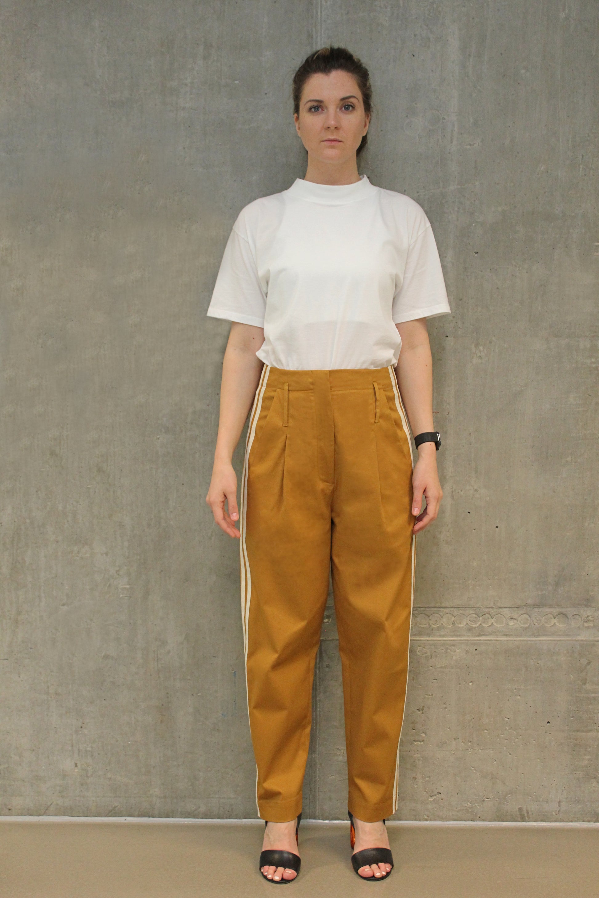 This Tela Trousers is a flattering and versatile piece. Made in Italy, these trousers feature a high waist, side pockets, front zip fastening and a loose fit design with lateral bands on the sides.