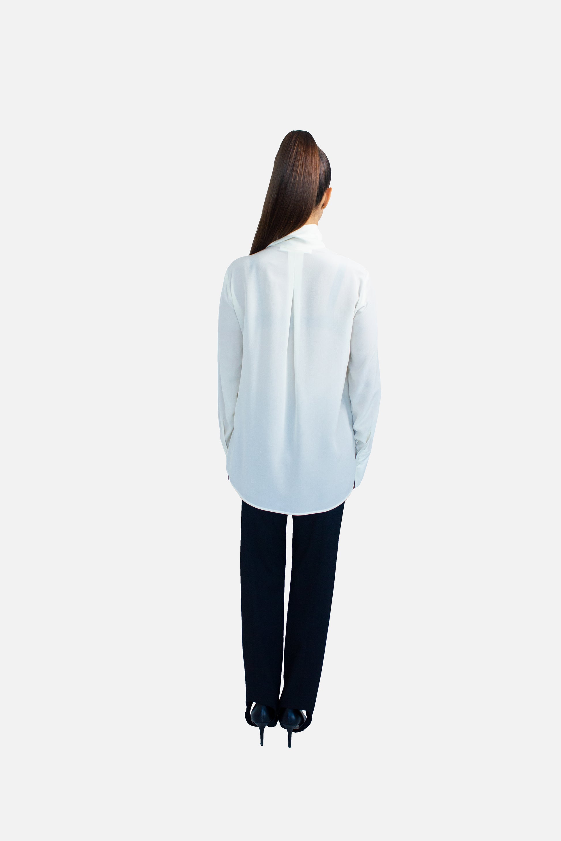 This elegant Pussy-bow Blouse is made from silk that feels so soft against your skin. It is featuring a loose fit, b utton fastening through front and a cascading pussy-bow tie. We think it looks especially smart with tailored pants and wrap skirts.