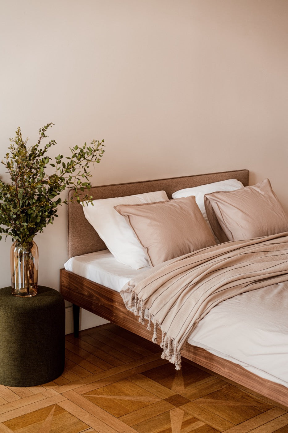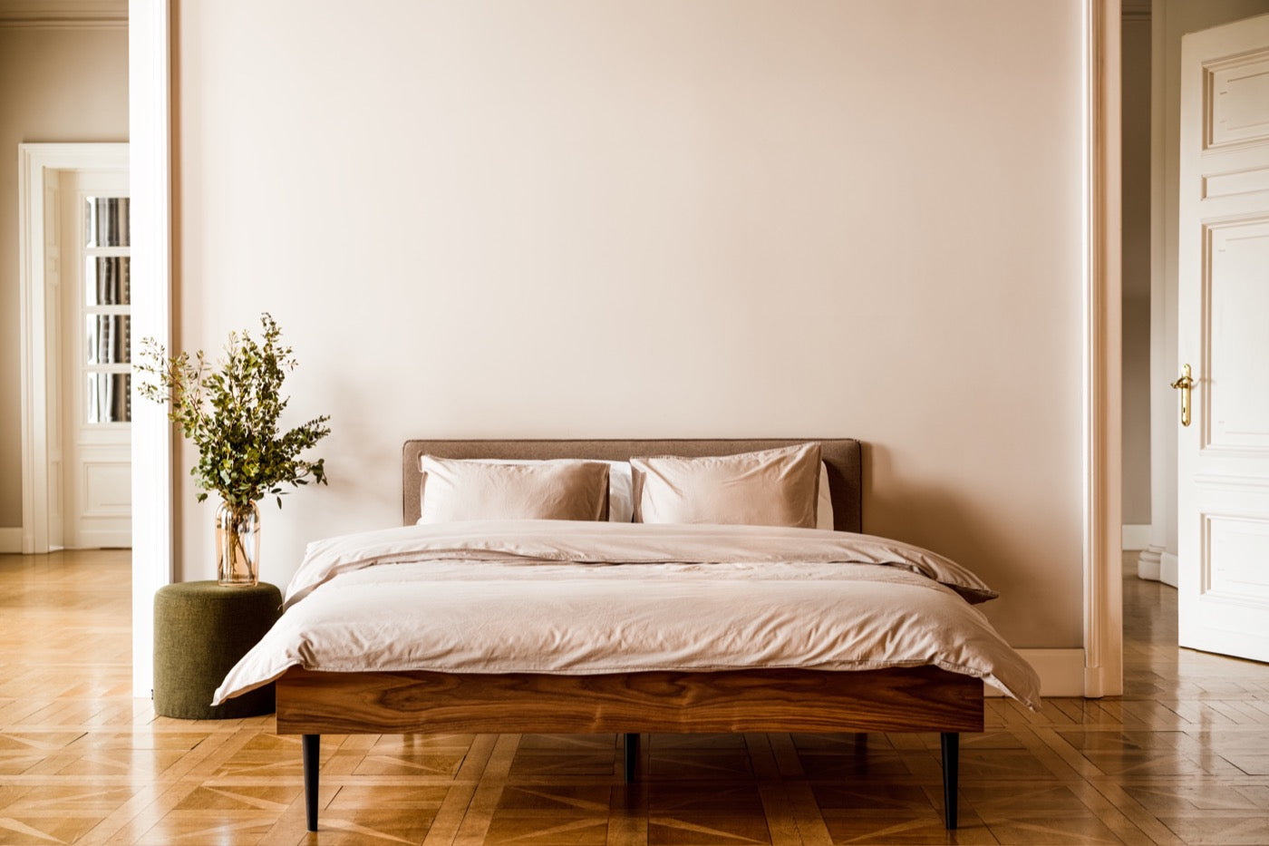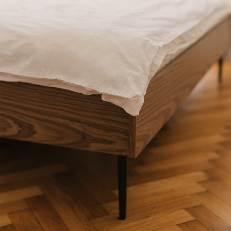 Precisely rounded legs, brilliant quality veneers, and the incredibly minimal shape of the bed result in durable and long-lasting use, elegant visual appeal, and superior daily comfort.