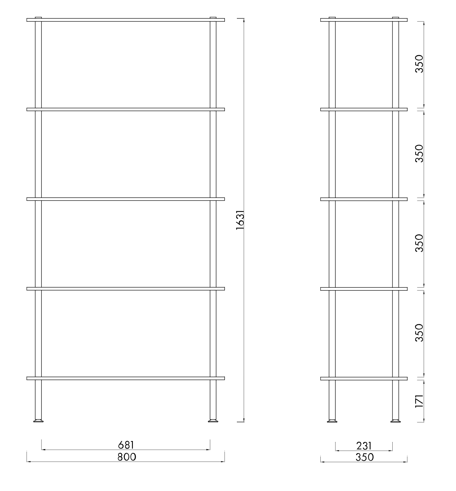 5-tier: H163 x W80 x D35 cm. Total weight: 24 kg