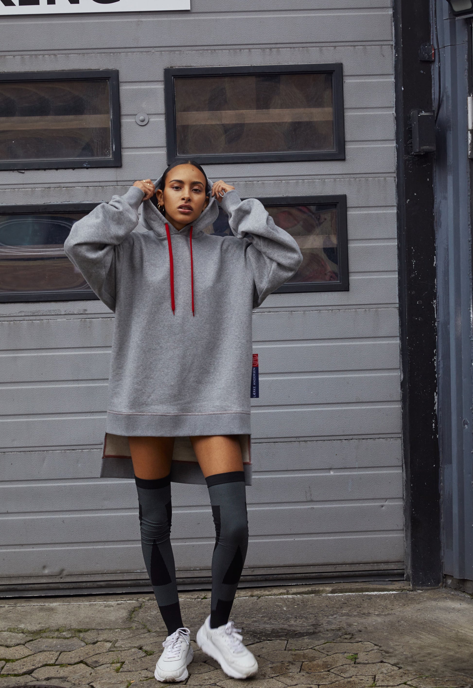 This Lærke Andersen Oversized Hoodie, made in one size, features an extended back hem that's finished off with Laerke Andersen's blue brand logo patch on the side. The combination of the long trail in the back, the extra length sleeves and the oversized construction makes for a truly versatile hoodie with added attitude.
