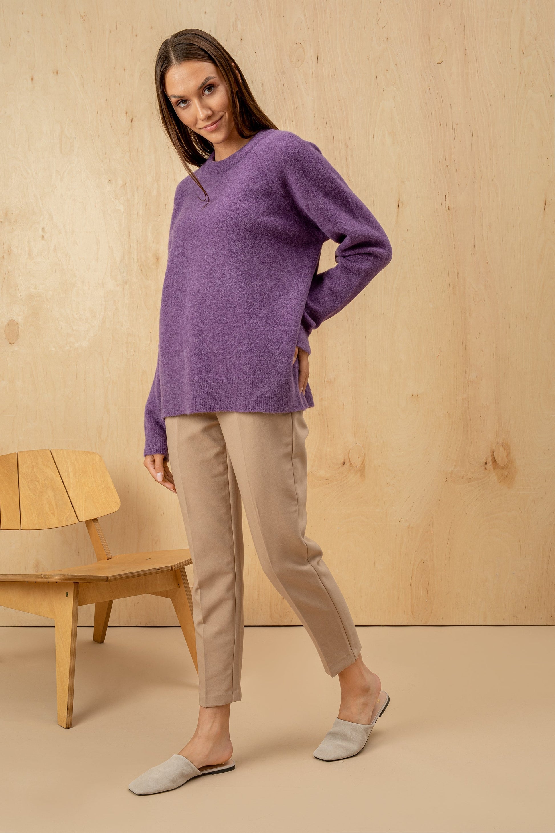 SOMEFANCYNAME brings you a unique, high-quality & sustainably designed Velvet Wool Sweater Oversized - Purple. It is made of the highest quality baby alpaca wool, soft and gentle against your skin. It is suitable for women with sensitive skin - no irritation and no red skin marks.